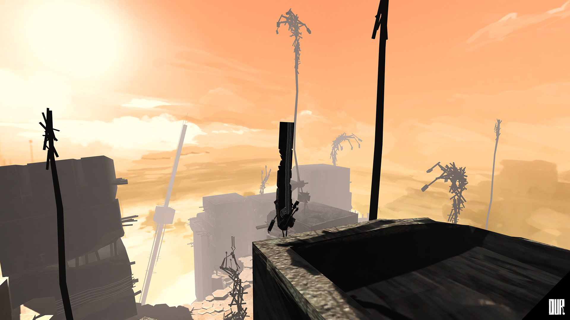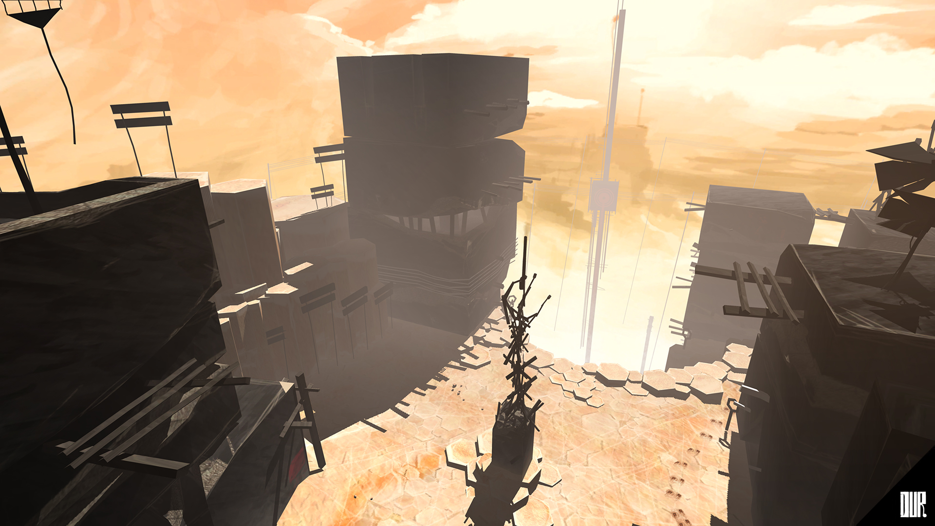 DUR is an adventure about a rusty iron sheet that is able to lift the whole environment with its violin in a surreal city threatened by a sea of fog.